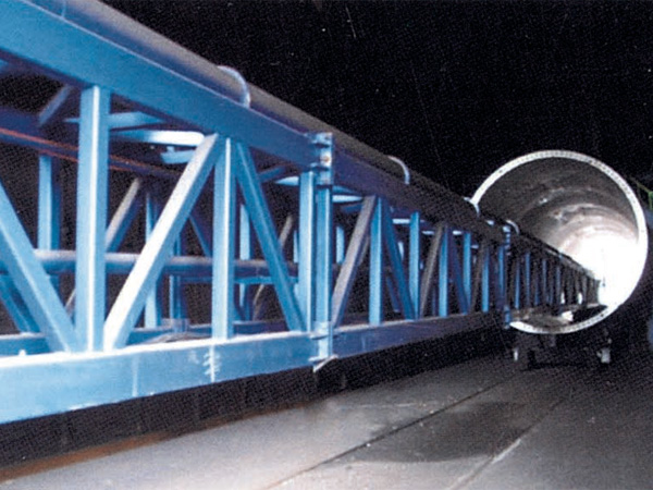 8、按吊車控制盒"右"按鈕、將吊桿移至*右側。當吊桿進入鋼管拋丸機時應放慢移動速度并注意吊桿是否對準槽口。
